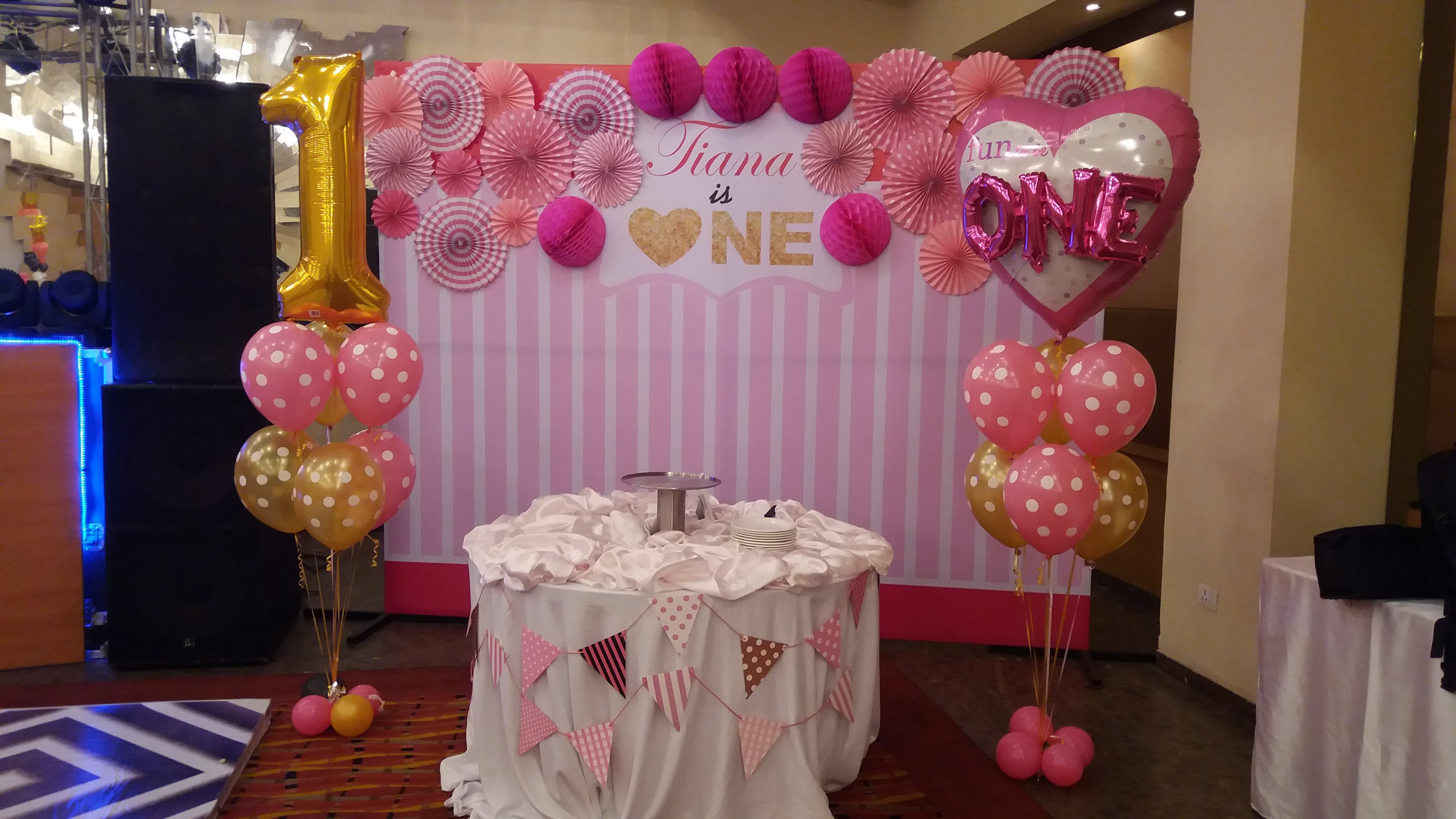 The birthday decorations included pastel color balloons and fresh flower arrangements, candles, foil balloons making it a beautiful 75th birthday decor in the hills of Kasauli.